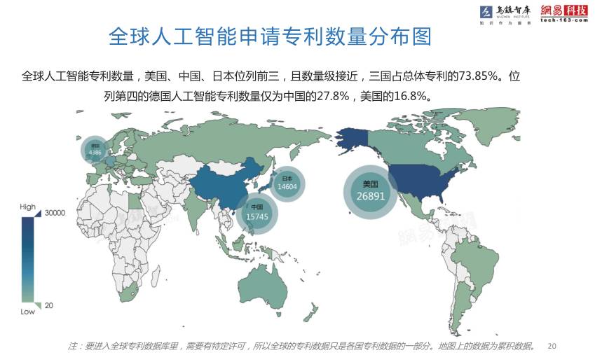 从报告可以看出,全球人工智能专利数量,美国、中国、日本分列前三,且数量级接近。人工智能在中国的发展状况可以说是如火如荼,与世界同步。